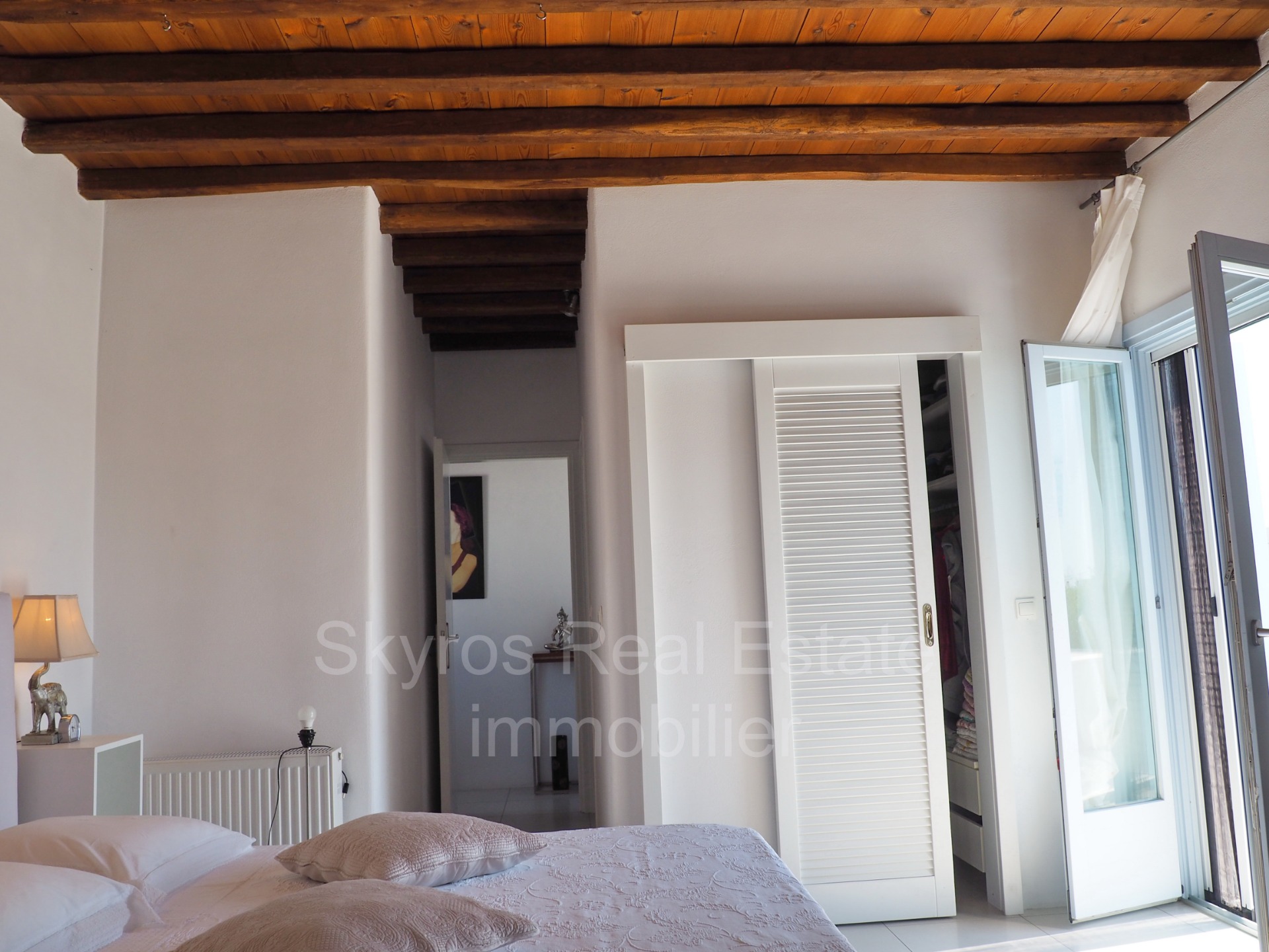 Located at a high class area on Skyros East, this magical 280m2(totally) island villa, is only 3 minutes on feet from the very famous & absolutely virgin Molos beach.